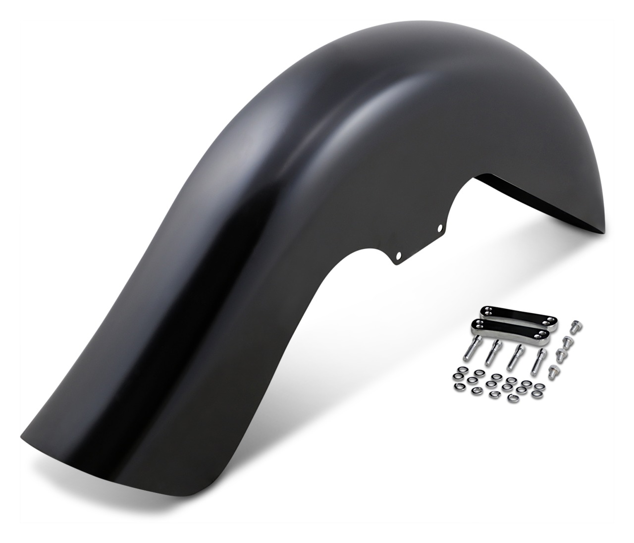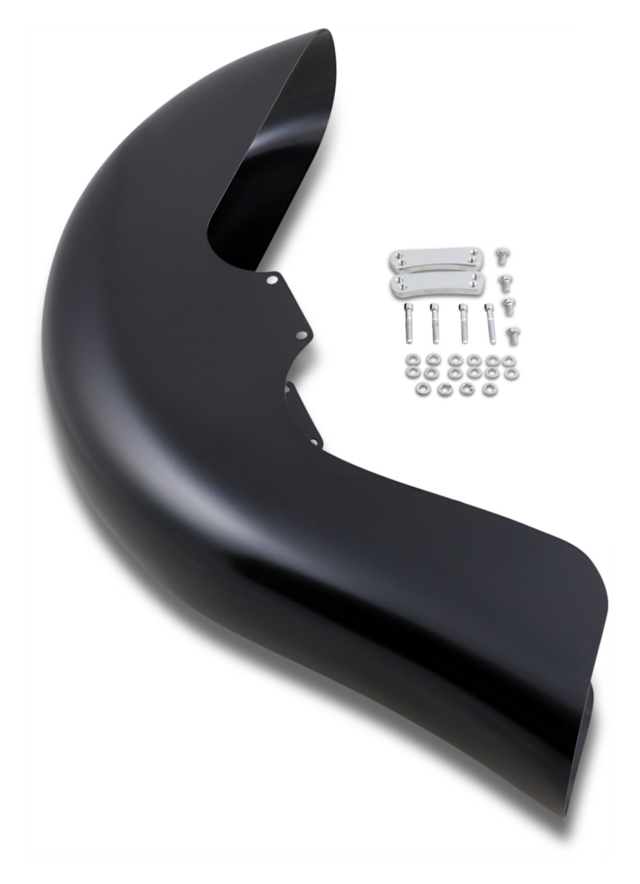 These ultra clean FL-style fenders come predrilled to fit a wide variety of front wheels. In true Klock Werks style, the fenders add a clean, yet dramatically flowing look as compared to the stock fender. Stamped from 14-gauge steel, these 6-1/2″ wide fenders are e-coated to prevent rust and corrosion. The use of precision deep-draw stamping technology ensures a consistent, flawless finish while minimizing body work.