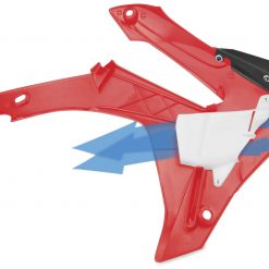 The Cycra Powerflow radiator shrouds are designed to help keep your machine running cool by increasing the airflow through the radiators. Both left and right shrouds are included and feature specially designed internal air scoops that force cooler air around the radiators instead of through them.