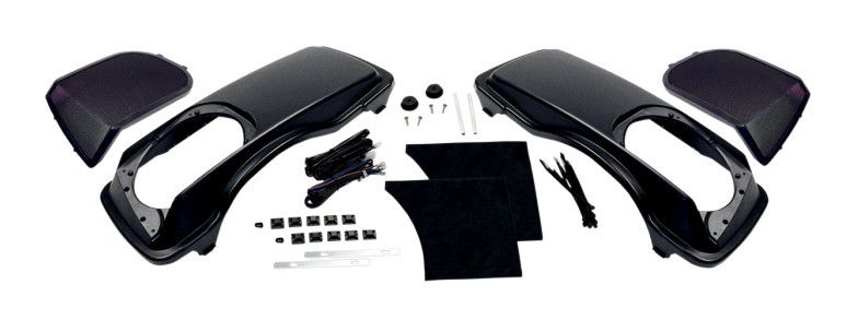 Your bag lids become an excellent spot to mount a pair of 6×9″ speakers with this simple kit from Hogtunes! It’s especially useful for custom Bagger owners who may be stuck in their quest to find a speaker mounting point.