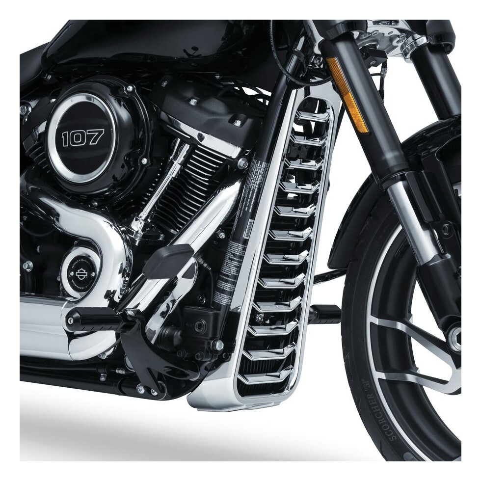 Give your Milwaukee-Eight Softail’s front end an entirely new look with this trick chin spoiler that covers the area between the frame and downtubes, as well as the horn, regulator cover, and oil cooler. The one-piece bolt-on cover installs with ease and features a sculpted and slotted design that maintains all-important airflow to the oil cooler.Â