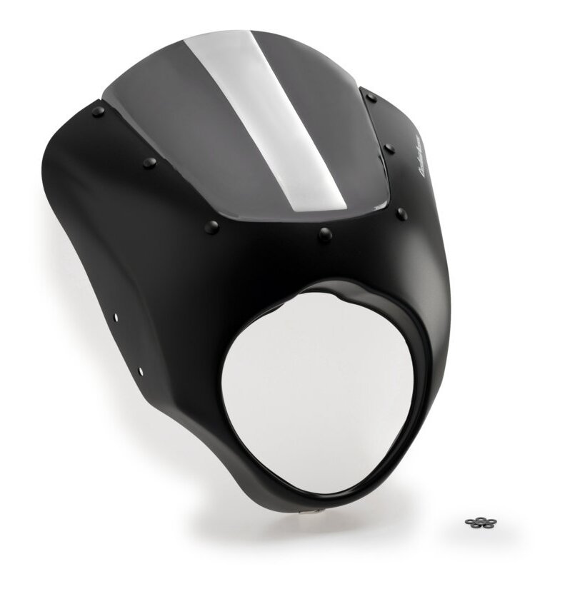 - Measures approximately 17-18″ wide and 12.5″ from top of headlight to top of fairing
