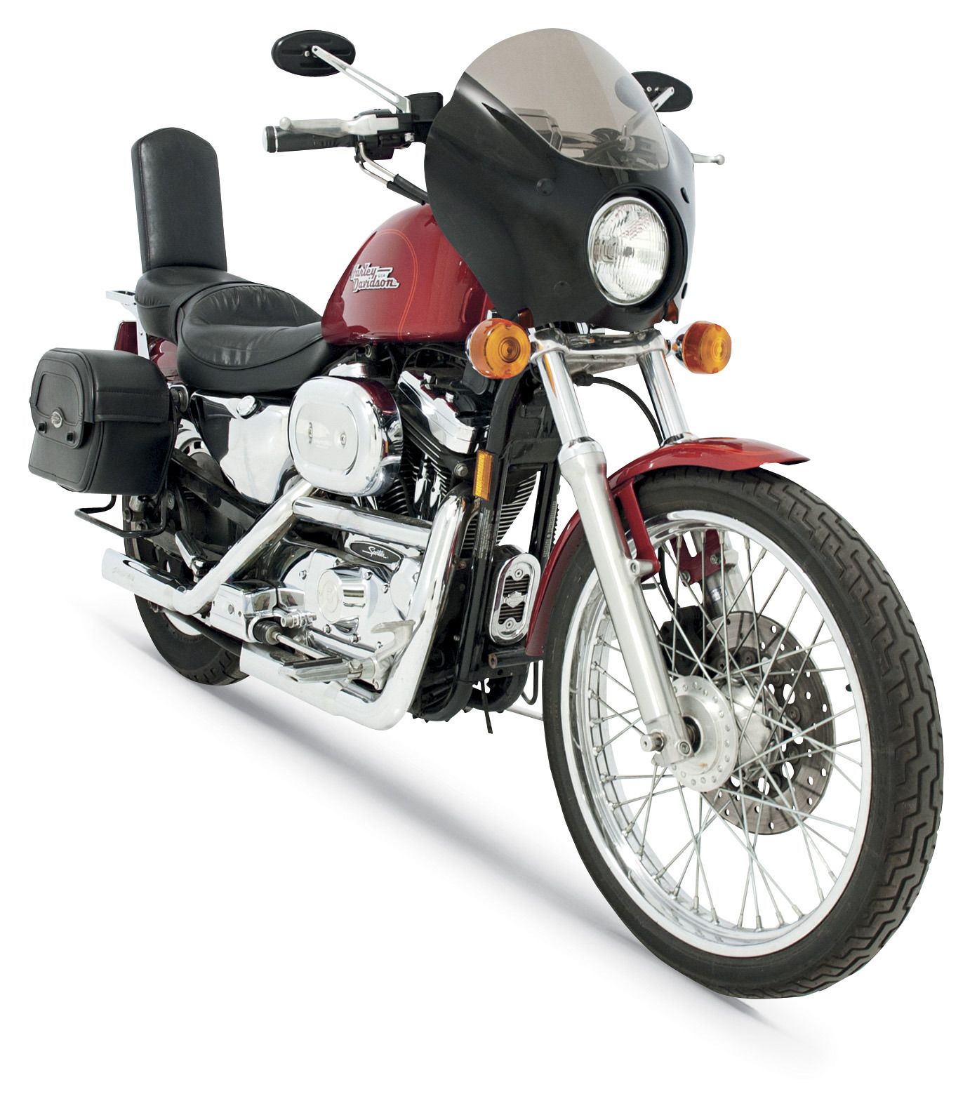 - Bold, aerodynamic shape with a hint of outlaw styling designed to streamline today’s low-slung cruisers