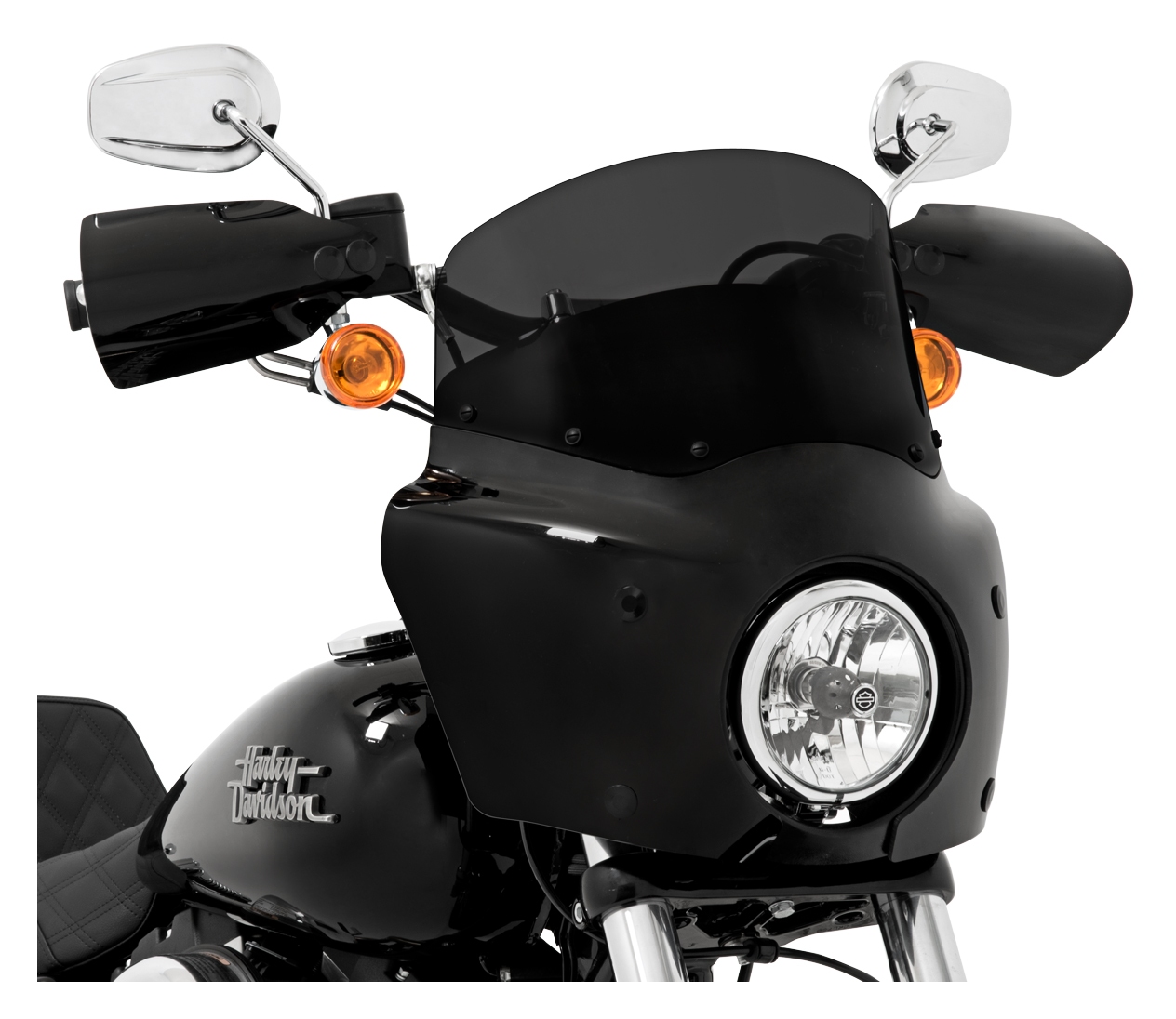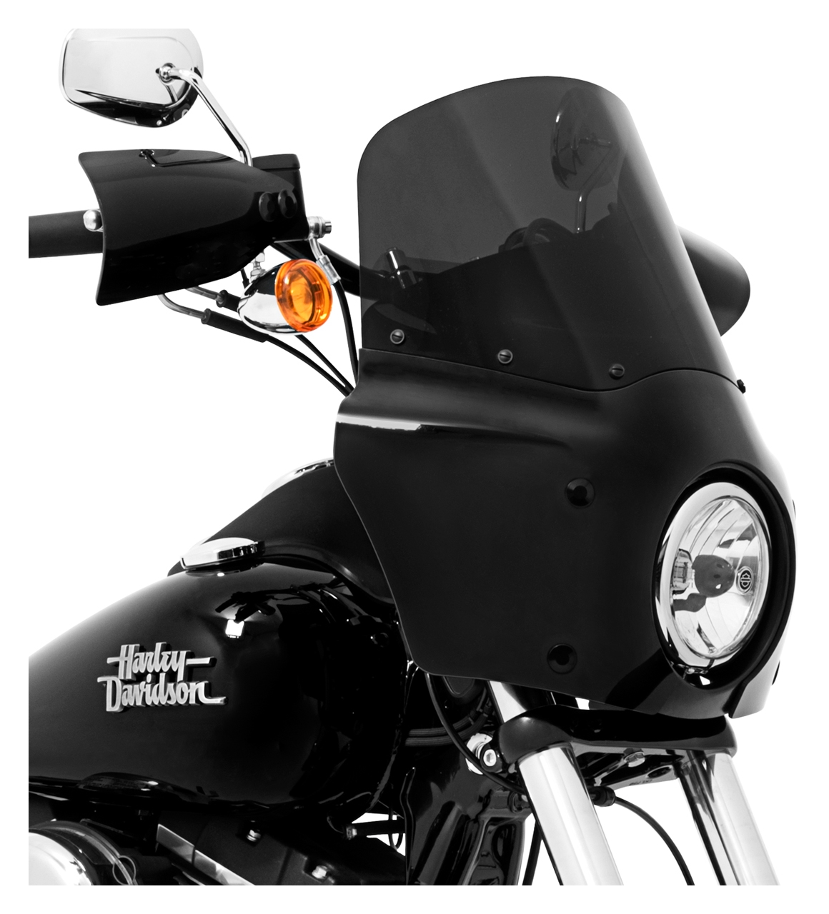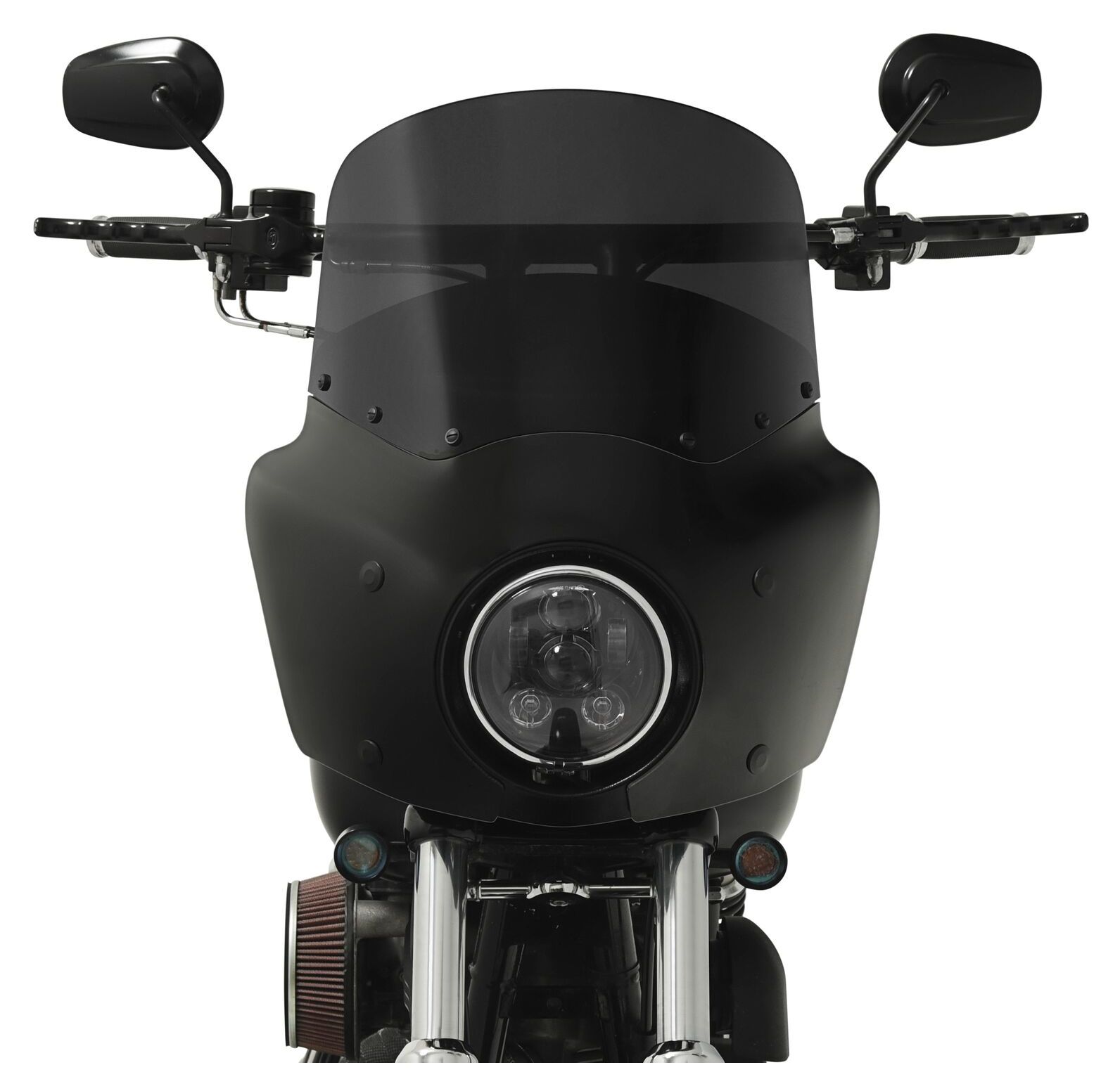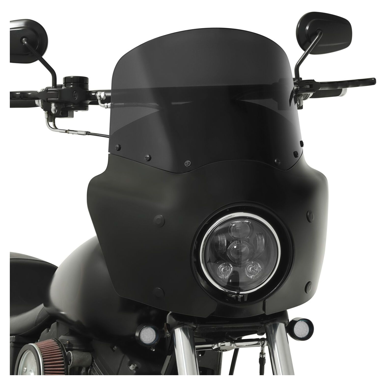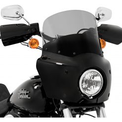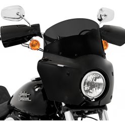 Note: Windshield and mounting kit are not included. Designed for use with Memphis Shades headlight extension block, sold separately. May require relocation of fork tube mounted turn signals.