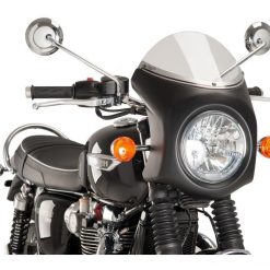 Take your modern classic to the next level with this fairing / windscreen combo from Puig. This fairing mounts easily with included hardware and lends your bike an even more retro look.