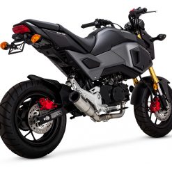 Sharpen up the tail section of your Grom with a Vance & Hines Fender Eliminator Kit. Deleting the large mount for the stock license plate, the Vance & Hines kit moves the license plate up high and tight just under the edge of the rear fender.