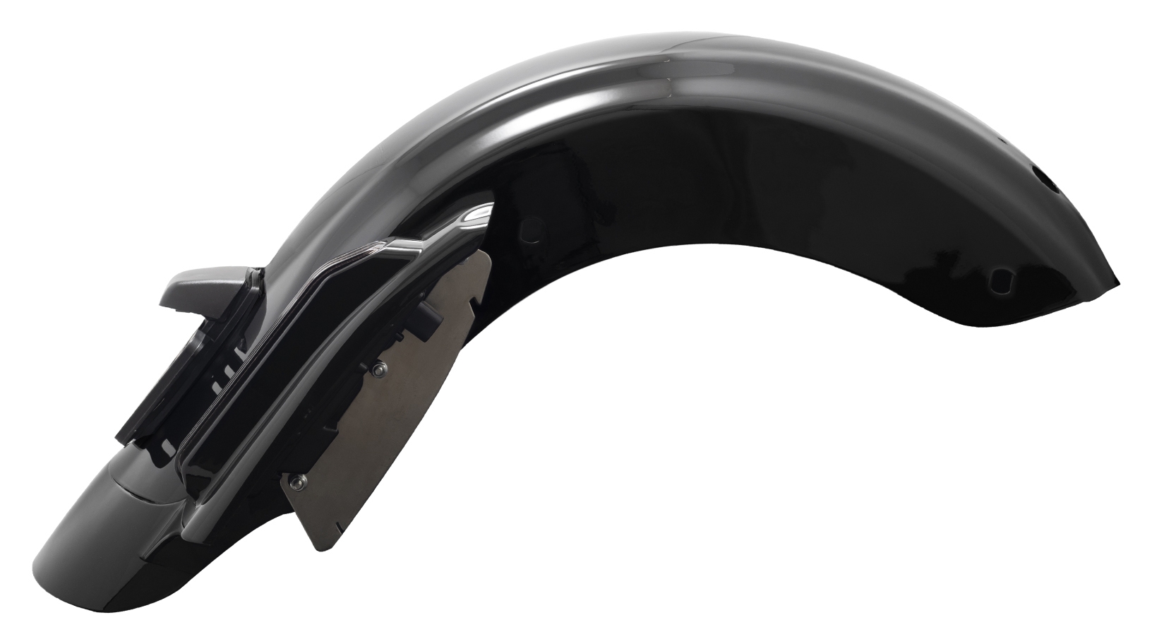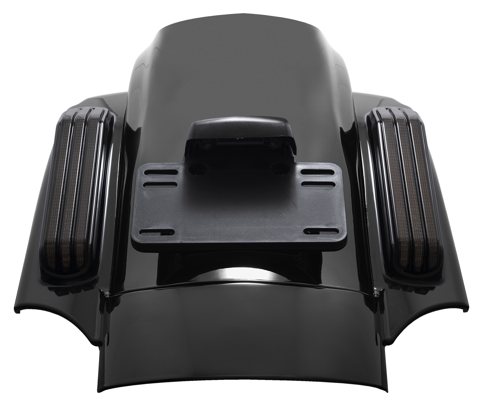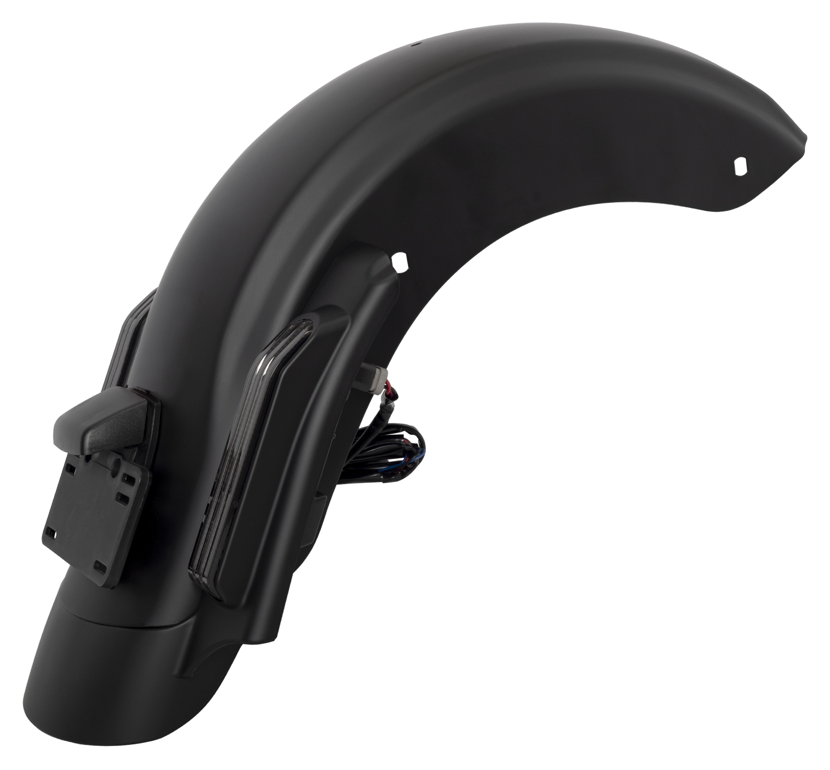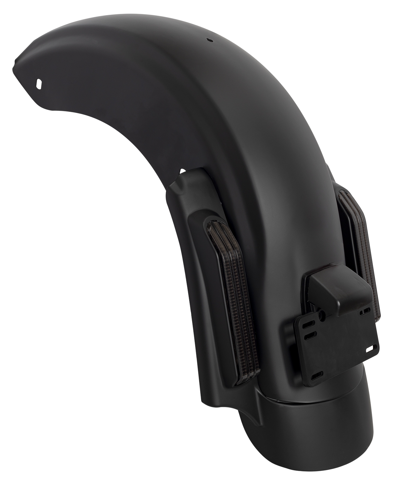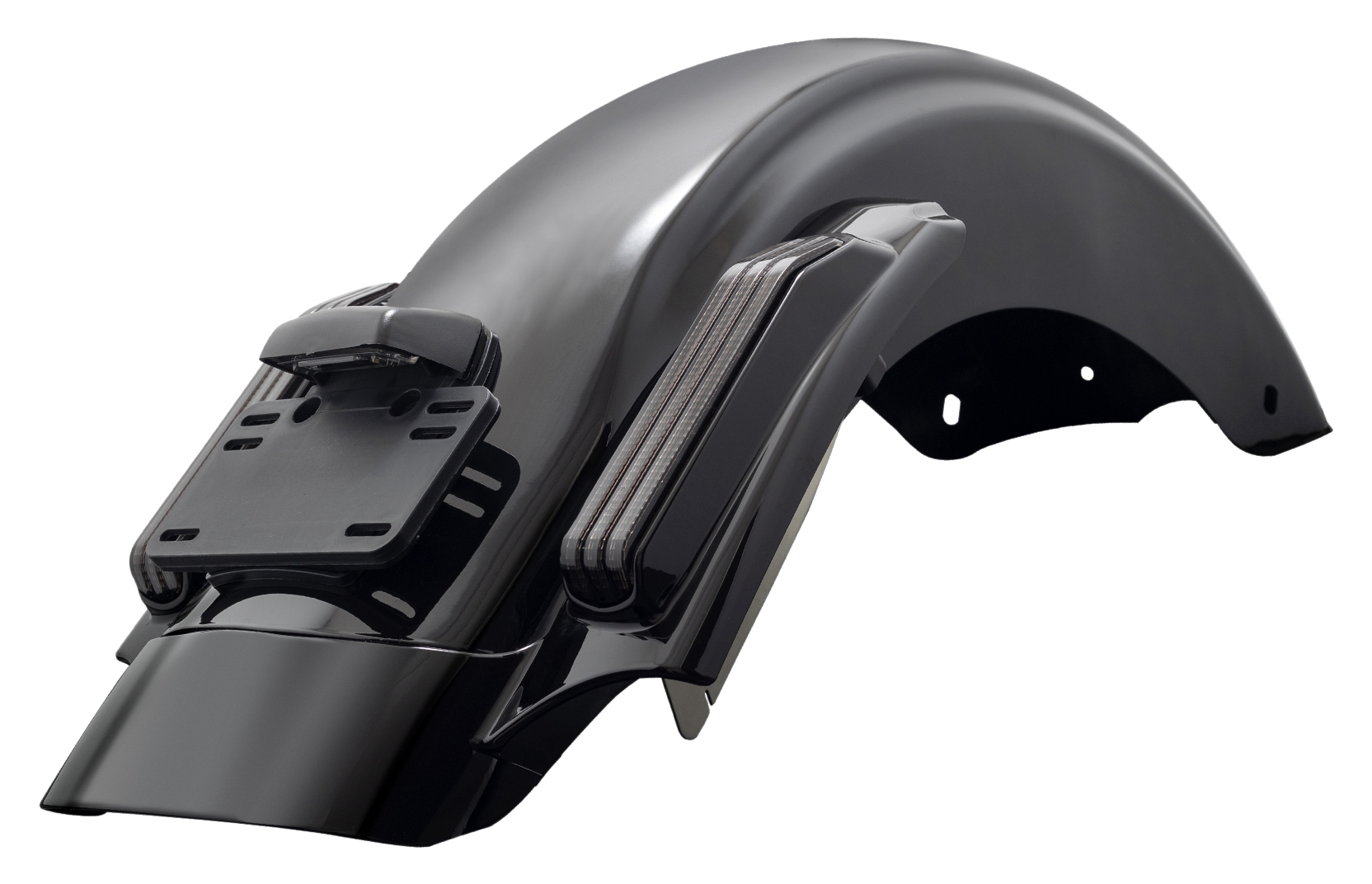 Hogworkz® has created the ultimate stretched rear fender system. It is complete with integrated LED Brake, Run, Turn signals to illuminate the road behind you.