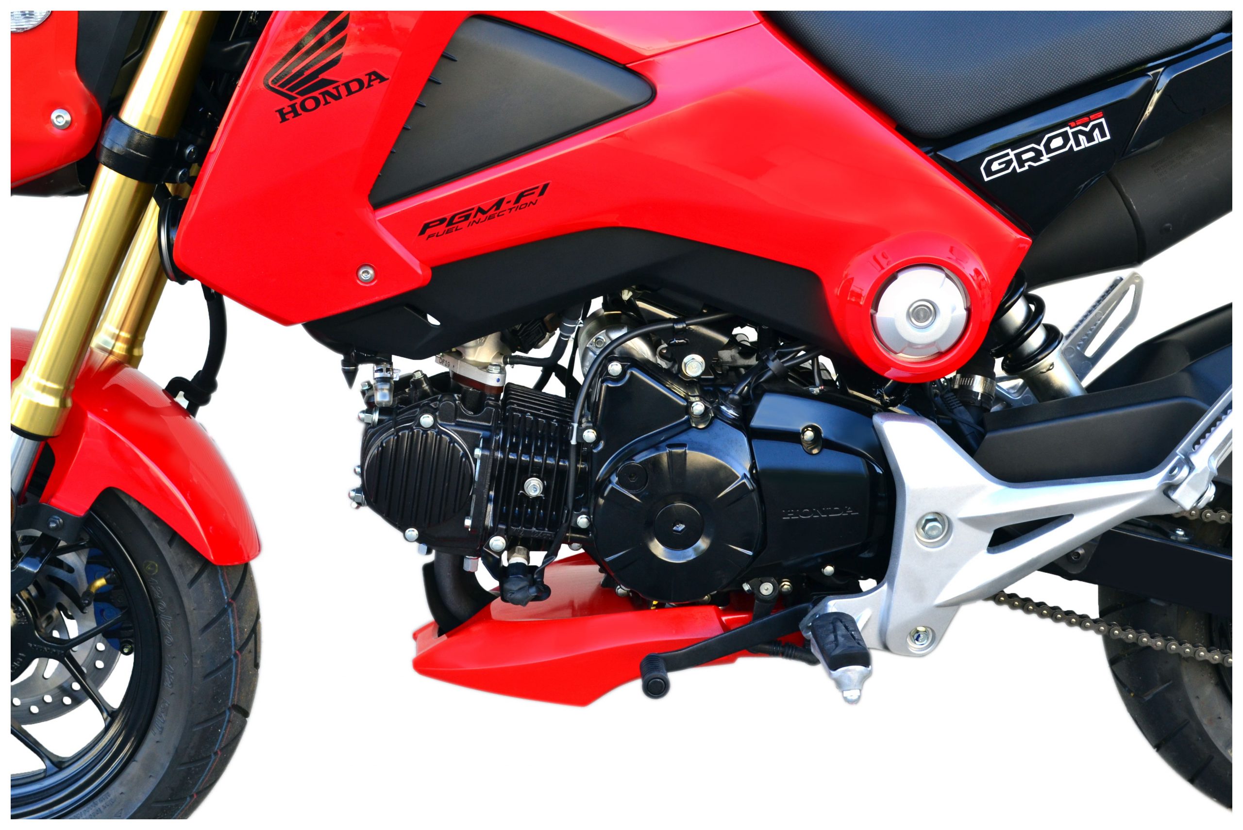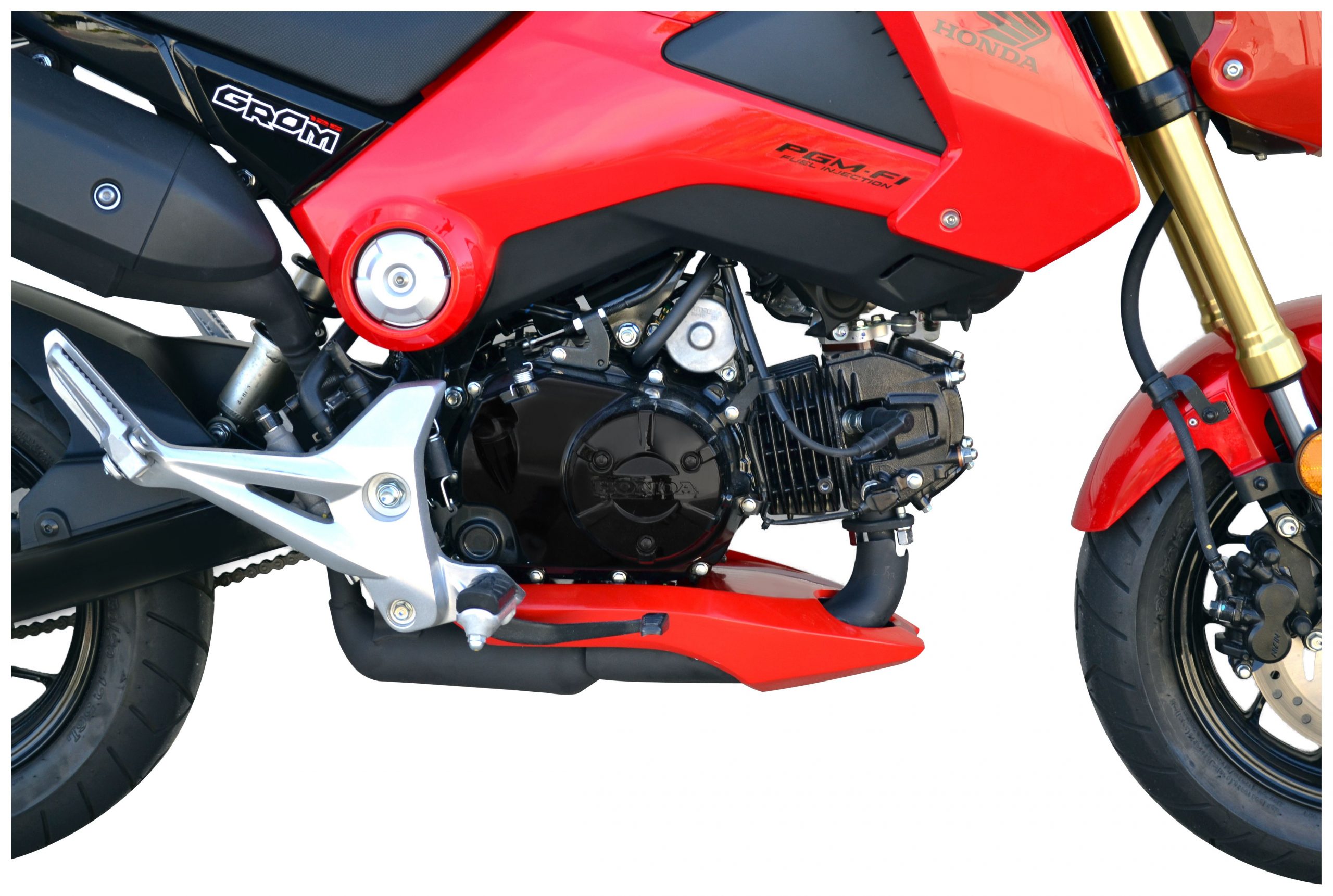 Hotbodies Racing is pleased to offer a lower that gives the Grom that aggressive European naked bike look. Constructed from durable FRP composites this item is based on materials used in world superbike competition. It is manufactured to be light weight and durable with excellent heat resistance. Professional automotive grade paint ensures high quality and a factory color code match.