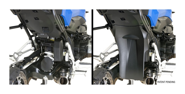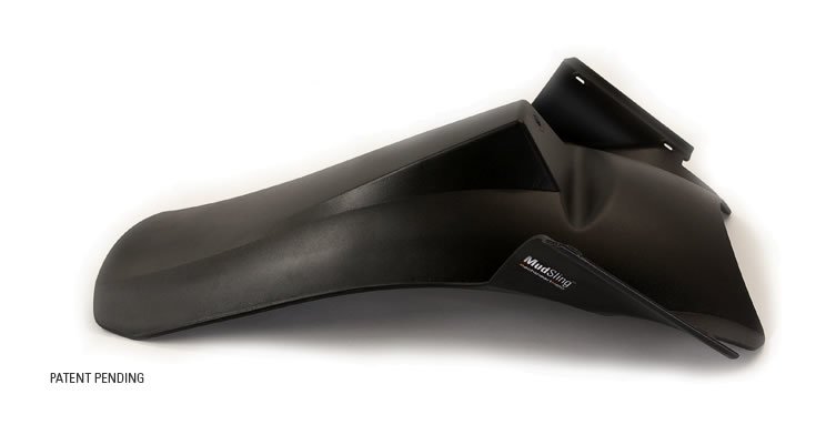 The MudSling stylishly protects the shock and battery area from flying mud, rocks, and tar, keeps the underseat area cleaner and reduces splash-out to the sides. MudSling installs without having to remove the stock spring cover or the rear wheel and looks beautifully integrated with the design of the R and RS.